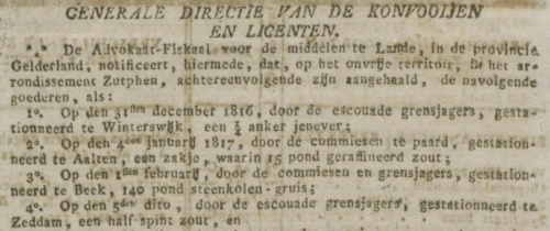 Een bericht in de Nederlandsche Staatscourant van 1 maart 1817 maakte melding van grensjagers in Beek en Zeddam.