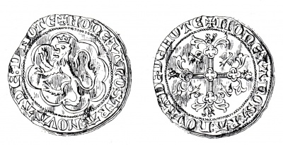 De voorzijde toont een gekroonde leeuw in een cirkel van acht halvemanen, op de keerzijde staat een gebloemd kruis.