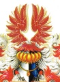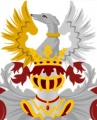 Als helmteken ontwikkelde de baniervlucht zich tot een (gestileerd) vleugelpaar.