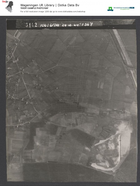Luchtfoto van Stokkum van 24 december 1944 uit de Special Collections van de Digital Library van de Universiteit Wageningen