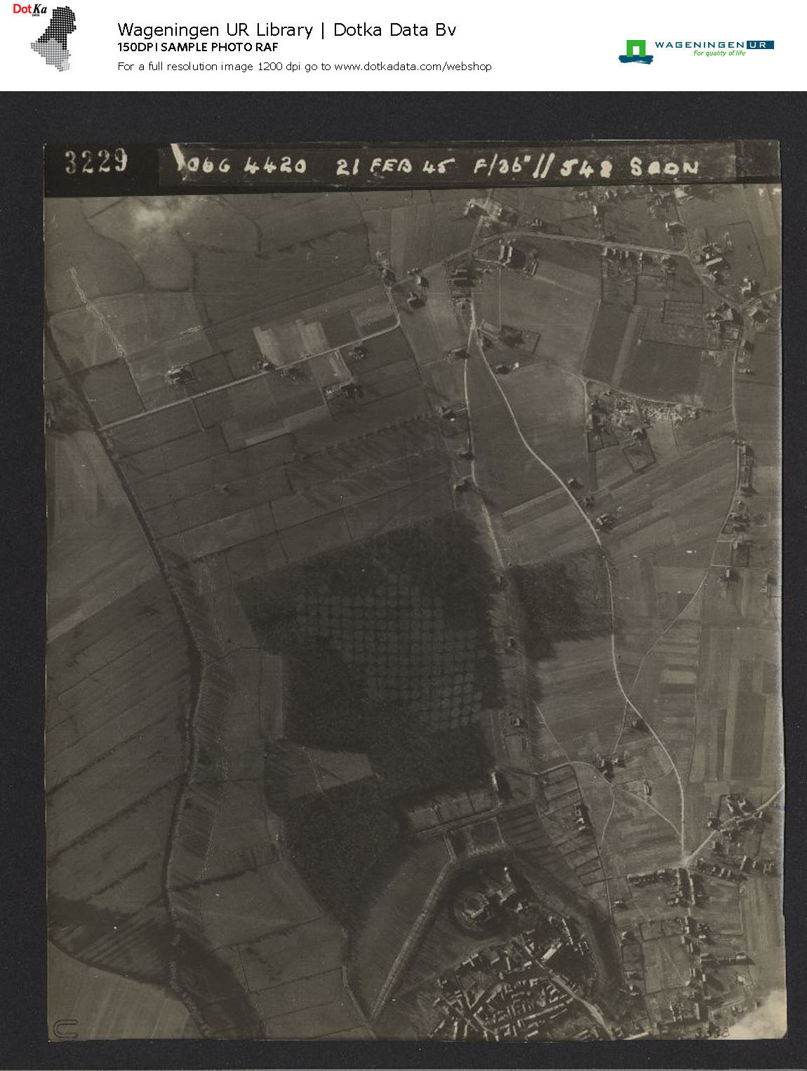 Luchtfoto van 's-Heerenberg van 21 februari 1945 uit de Special Collections van de Digital Library van de Universiteit Wageningen