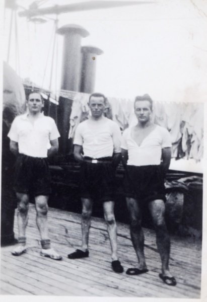 Aan boord van de Marnix van St. Aldegonde v.l.n.r. Joep Overgoor, Gerrit van Dam en Sjaak van Bergen. Bron: Jaap van Bergen