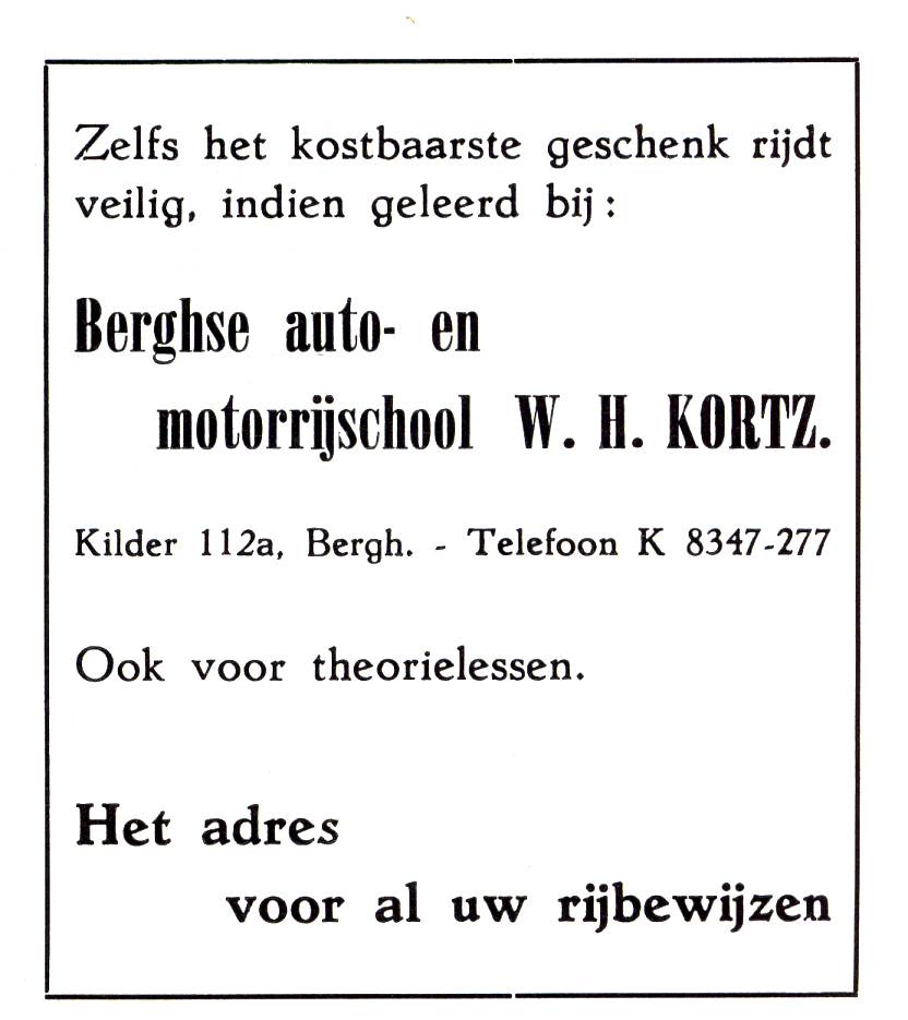 Berghse auto en motorrijschool , te Kilder, W.H.Kortz.