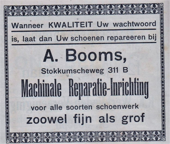 | huidige versie | 17 mrt 2017 08:54 | 900 × 762 (609 kB) | Benny Schuurman (overleg | bijdragen) | A. Booms Machinale reparatie inrichting schoenwerk |