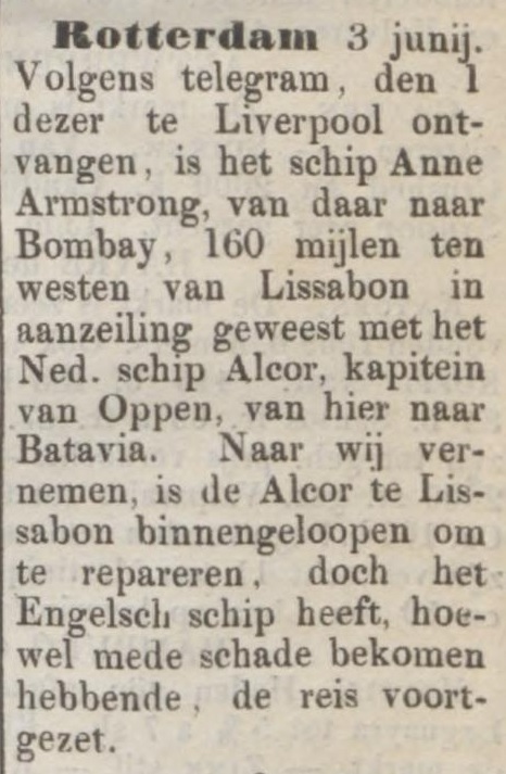 Uit de Rotterdamsche Courant van 4 juni 1859 op www.delpher.nl