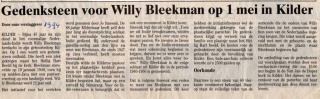 Krantenartikel over de onthulling van de gedenksteen voor Willie Bleekman