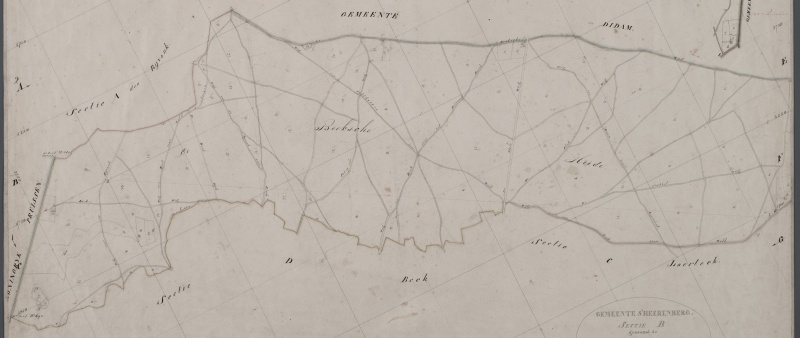 Zoom van Sectie A van kadasterkaarten 1811-1832, Beeksche Heide Bron: Rijksdienst voor het Cultureel Erfgoed, Amersfoort / MIN05079B01
