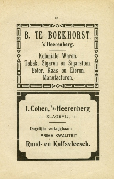 B.Te Boekhorst kolonialewaren enz. I Cohen Slagerij Rund en Kalfsvlees blz 87
