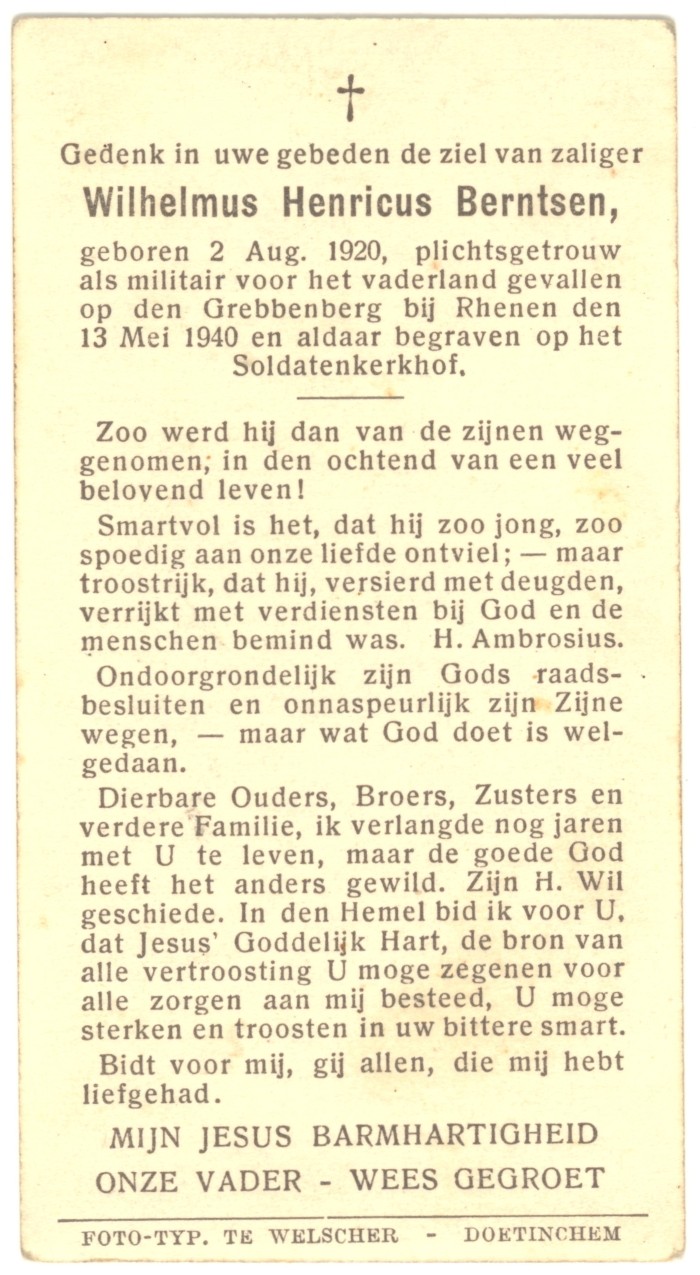 De achterkant van het bidprentje van Wim (WH) Berntsen