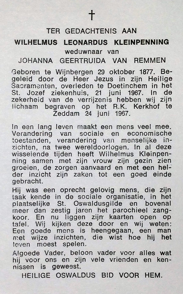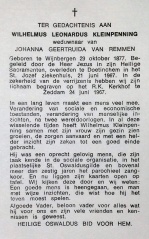 Bidprentje van Wilhelmus Leonardus Kleinpenning, 1877-1967