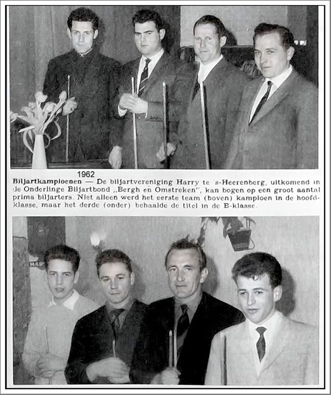 Bestand:Biljart vereniging Harry 2 teams 1962 kampioen.jpg