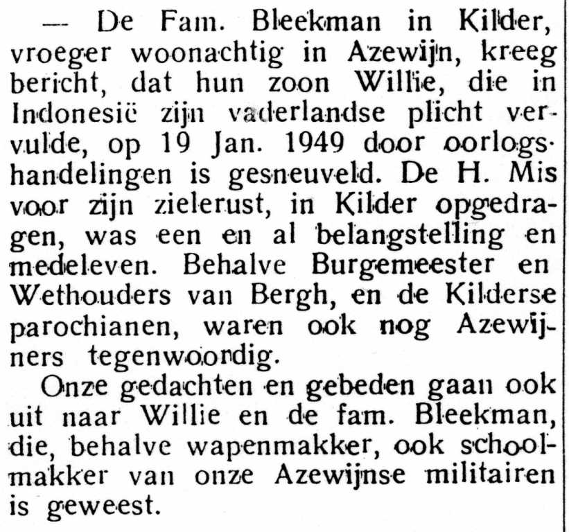 Bericht sneuvelen Bleekman in Azem's Nieus, jrg. 2, no. 7
