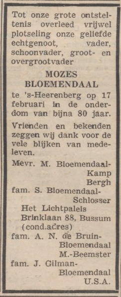 Uit het Nieuw Israëlitisch Weekblad van 24 februari 1961 op http:www.delpher.nl