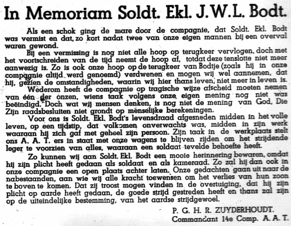 In Memoriam Bod in "De Bergjager", het compagniesorgaan van 14 AAT