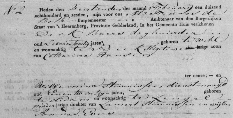 Het begin van de trouwakte van Derk Boers, 1816, in 's-Heerenberg. Bron http://zoekakten.nl
