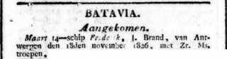 Uit de Bataviasche Courant van 21 maart 1827 op http://www.delpher.nl