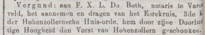Vermelding van de onderscheiding voor FXL de Both in de Nederlands-Indische krant De locomotief: Samarangsch handels- en advertentie-blad van 17 maart 1876.