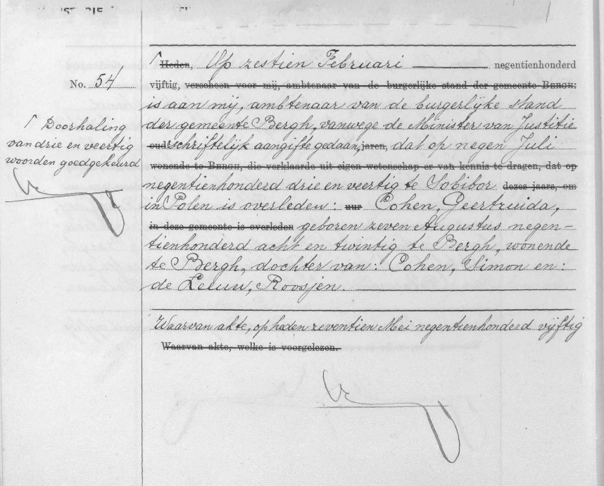 Truusje Cohens overlijdensakte in de gemeente Bergh. Bron http://zoekakten.nl