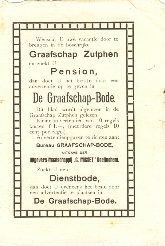 De Graafschapbode, laatste bladzijde van De gids voor 's-Heerenberg.