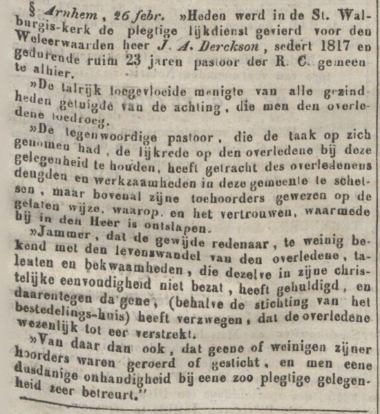 uit de Arnhemsche Courant van 28 februari 1846. Bron http://kranten.kb.nl