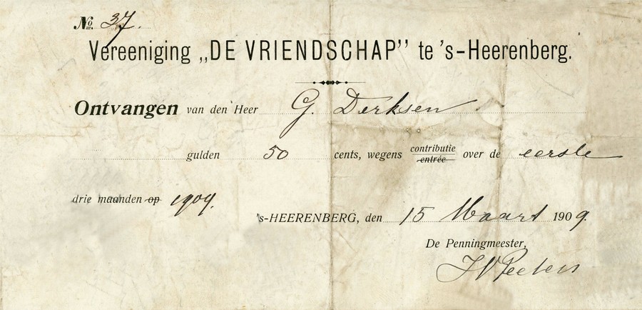Gradus Derksen lid Vriendschap 1909