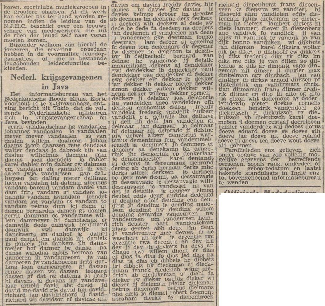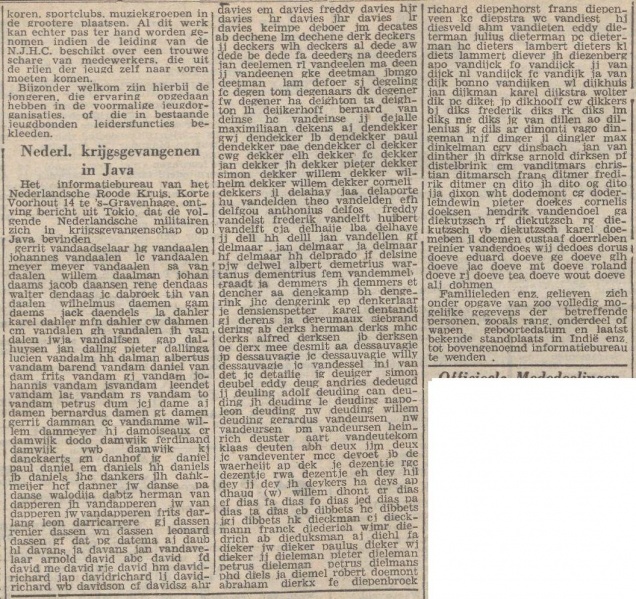 Lijst van krijgsgevangenen in de Provinciale Overijsselsche en Zwolsche Courant van 21 augustus 1943. JG van Dillen is waarschijnlijk Joseph Gerardus van Dillem uit Zeddam