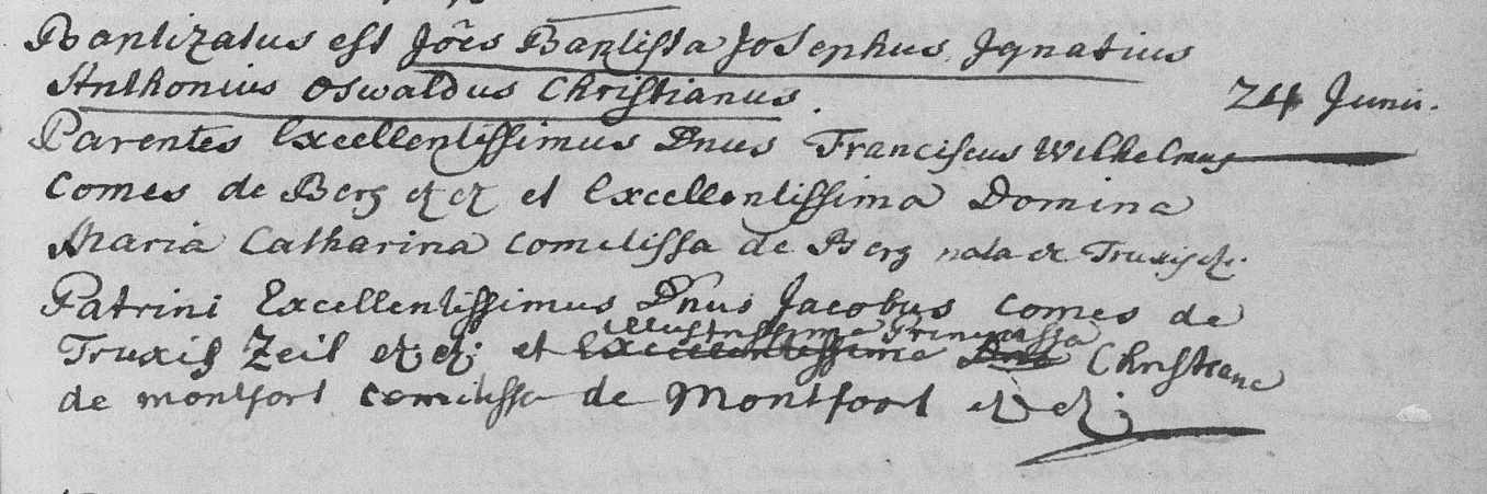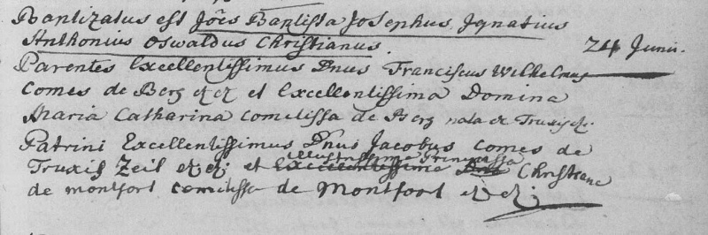 doopakte van Johan Baptist van Hohenzollern-Bergh. Bron http://zoekakten.nl