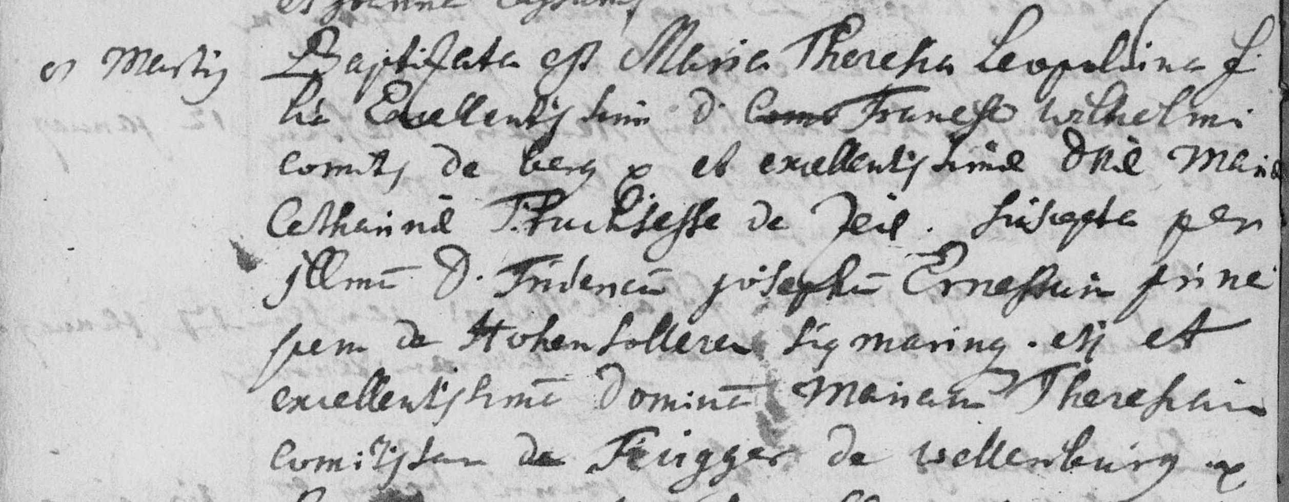 Maria Theresia Leopoldina's doopakte van 8 maart 1730 in Zeddam. Bron zoekakten.nl