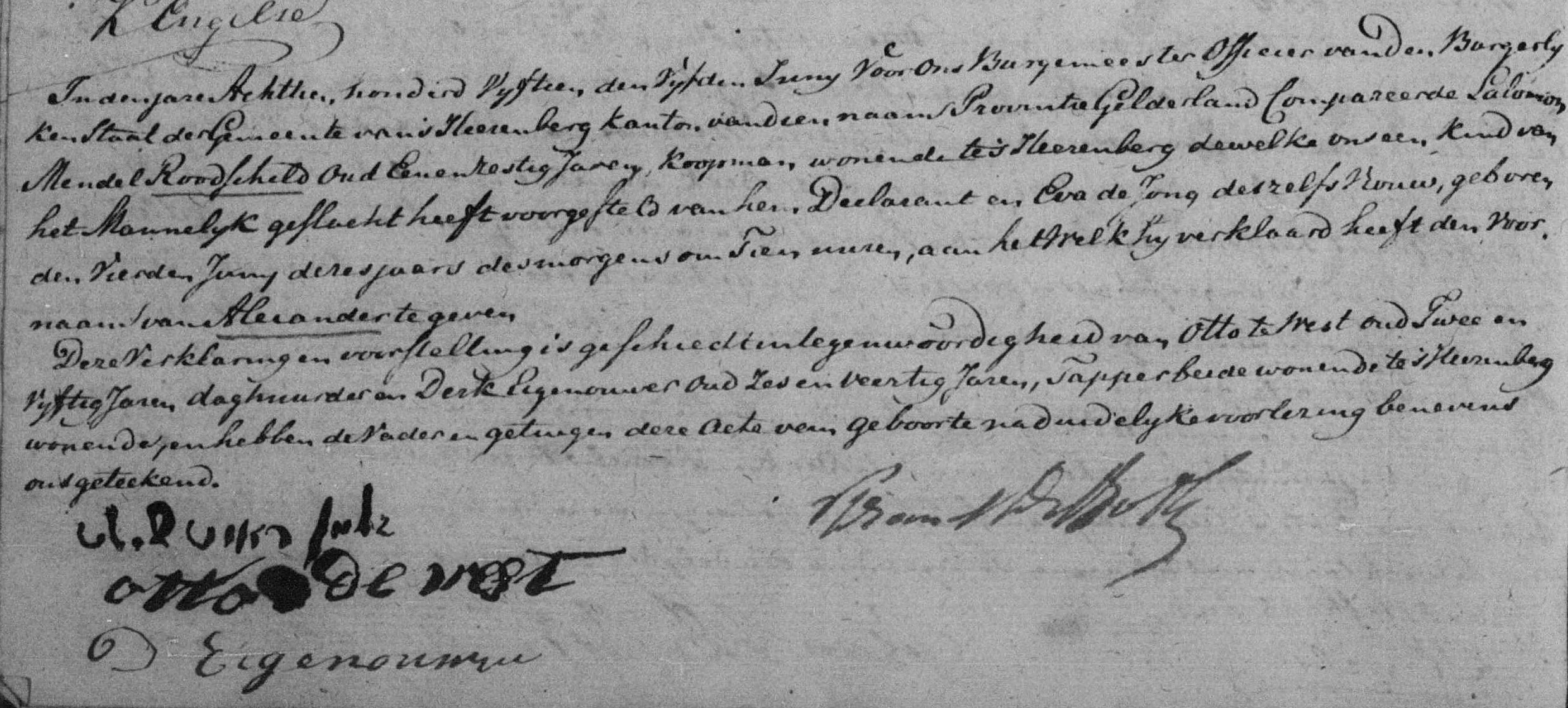 Bestand:Geboorteakte Alexander Roodschild 1815.jpg
