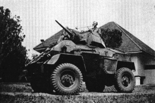 Bennie Gerrits uit Beek op een Humber pansterwagen in Indië. Archief Jan Meurs
