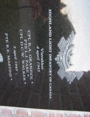 Gedeelte van het oorlogsmonument in Leesten met namen van de gesneuvelden die in Bergh begraven hebben gelegen. Foto Marcel Messing