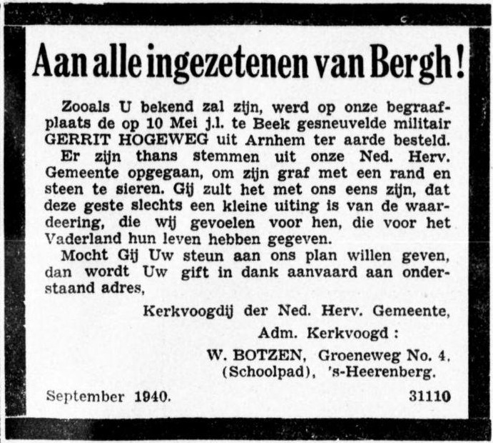 Uit de Graafschapbode van 27 september 1940. Bron http://kranten.kb.nl
