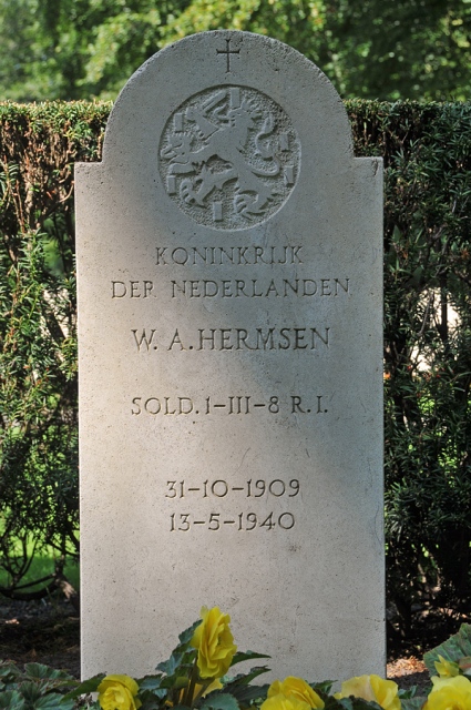 Hermsens graf op het Militair Ereveld Grebbeberg in Rhenen. Foto Stichting De Greb