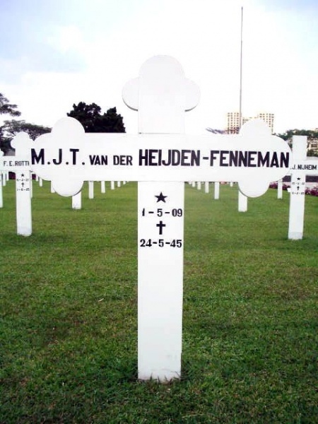 | huidige versie | 7 jan 2011 12:39 | 480 × 640 (54 kB) | Verre neef (overleg | bijdragen) | Het graf van Marie van der Heijden-Fenneman op het Nederlandse ereveld Menteng Pulo in Jakarta, Indonesië. Foto Oorlogsgravenstichting |