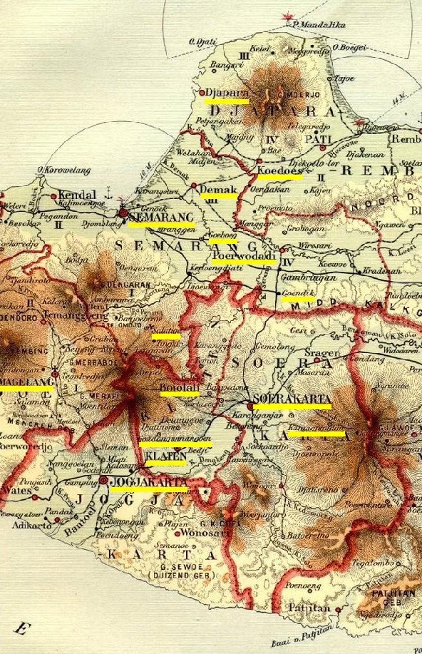 Midden-Java met de plaatsen die Van Heek noemt in zijn boek Front op Java
