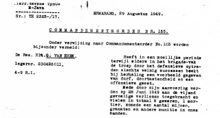 Bijzondere vermelding van luitenant Van Heek door generaal-majoor Meijer