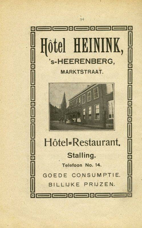 Hotel Heinink, marktstraat, Hotel Rest. Stalling. blz 94