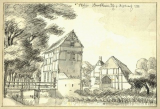 Huis Barlham, tekening uit 1743 van Jan de Beijer