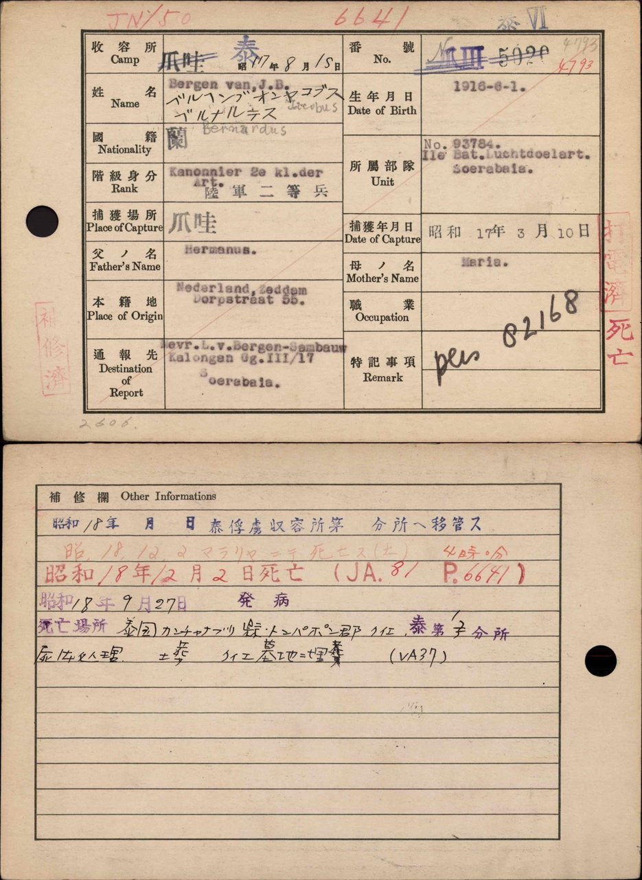 Bron: Nationaal Archief, Den Haag, Ministerie van Binnenlandse Zaken: Stichting Administratie Indonesische Pensioenen (SAIP), Stamboekgegevens KNIL-militairen, met Japanse Interneringskaarten, 1942-1996, nummer toegang 2.10.50.03, inventarisnummer 419 (te vinden op http://www.gahetna.nl)