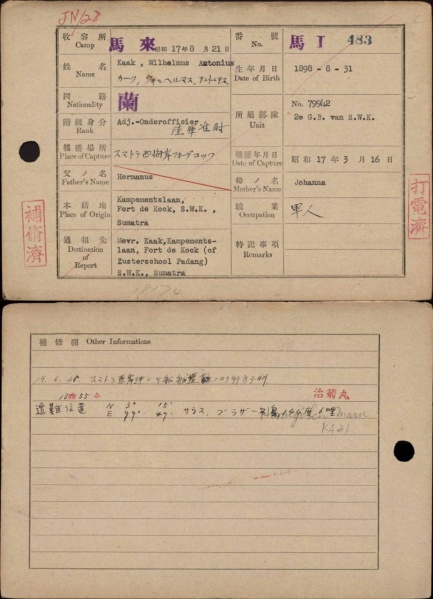 Bron: Nationaal Archief, Den Haag, Ministerie van Binnenlandse Zaken: Stichting Administratie Indonesische Pensioenen (SAIP), Stamboekgegevens KNIL-militairen, met Japanse Interneringskaarten, 1942-1996, nummer toegang 2.10.50.03, inventarisnummer 435 (te vinden op http://www.gahetna.nl)