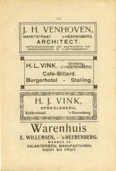 J.H.Venhoven marktstraat Architect en vertegenwoordiger brandverzekeringen. H.L.Vink Grintweg Burgerhotel Cafe Billard Stalling. E.Willemsen Warenhuis. blz 109