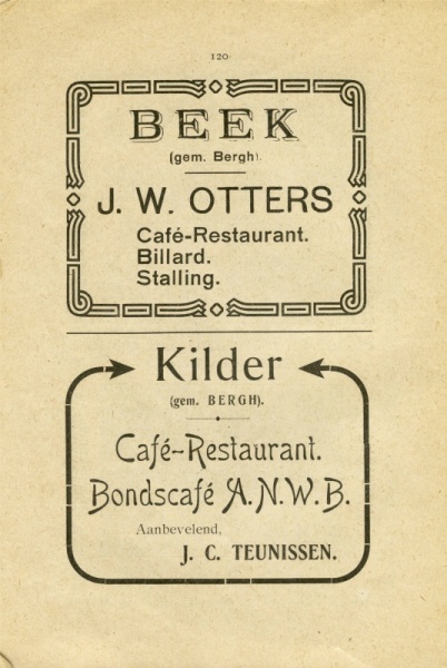 J.W.Otters beek Cafe Restaurant. J.C.Teunissen Cafe Restaurant A.N.W.B. Kilder blz 120