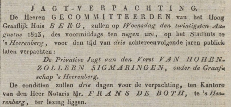 Arnhemsche Courant van 14 augustus 1823 op http://www.delpher.nl