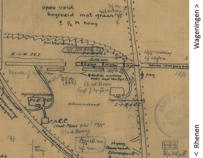 Gedeelte van een situatieschets door luitenant Van den Boom, commandant van de 1e sectie van 2-III-8 RI. Bron: www.grebbeberg.nl