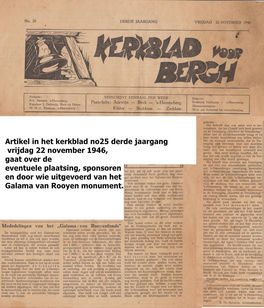 Artikel Galama van Rooyen monument kerkblad 25