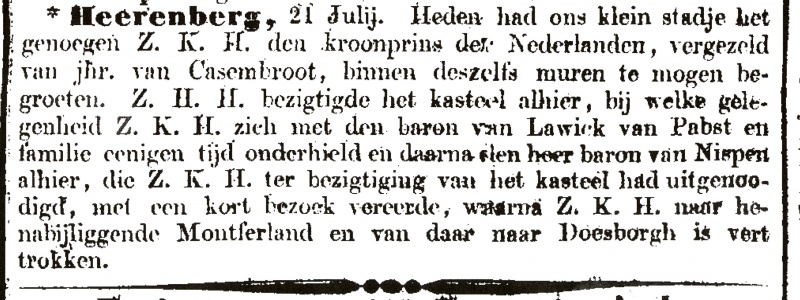 Kroon Prins Willem in 's-Heerenberg, 21 juli 1853