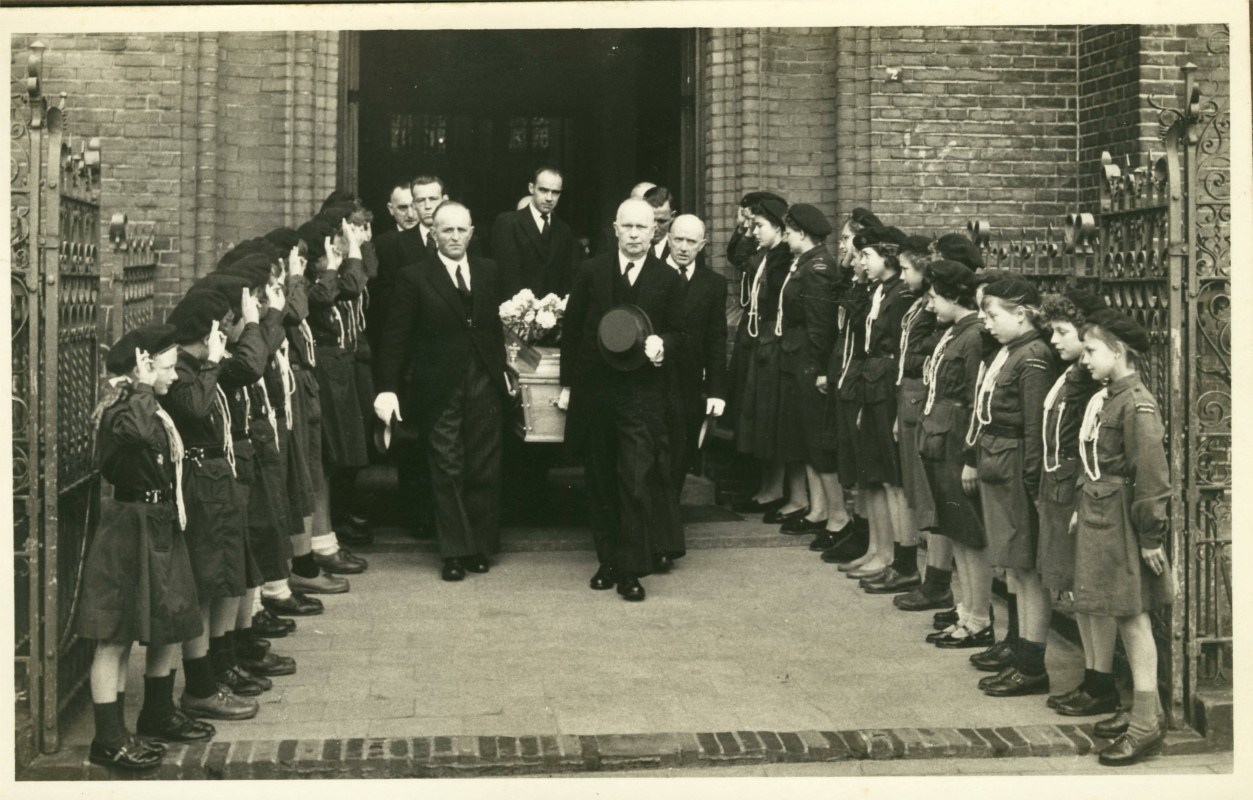 Pastoor Gribnau wordt uitgeleidde gedaan door de collectanten en de gidsen
