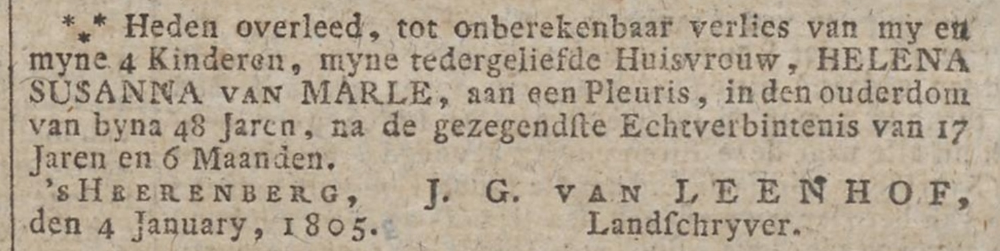 Uit de Opregte Haarlemsche Courant van 10 januari 1805 op Delpher