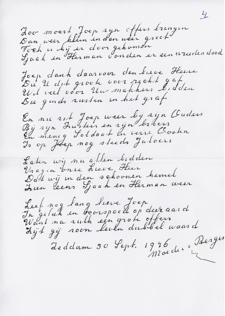 Deel 4 van het Lied van Joep van Dillen door moeder Van Bergen, 1946