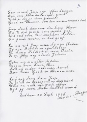 | huidige versie | 14 apr 2013 14:13 | 896 × 1.258 (238 kB) | Verre neef (overleg | bijdragen) | Deel 4 van het Lied van Joep van Dillen door moeder Van Bergen, 1946 |